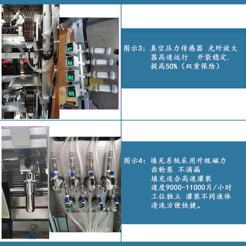 2.全自動面膜機: | 充填精華液,再對充填完精華液的面膜袋進行封口和打碼。 |