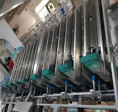 1、面膜放料區(qū)域空間大(8個工位批量生產(chǎn),效率高,也不會因為來不及放面膜而導(dǎo)致停機)