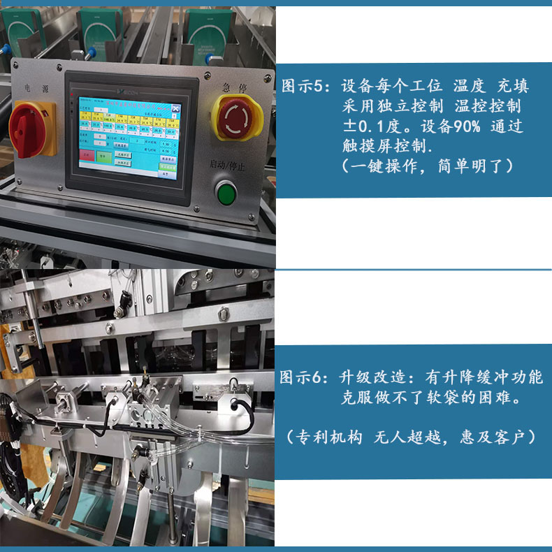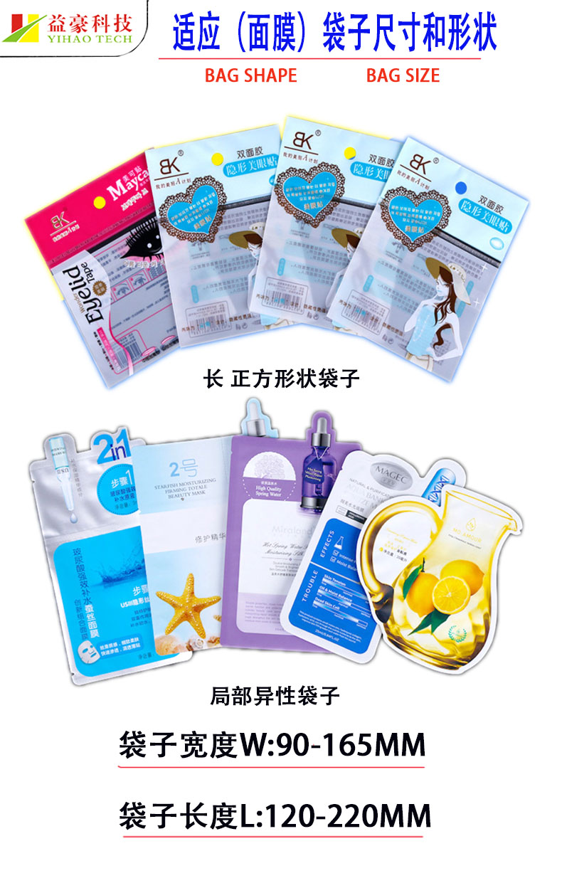 2.全自動面膜機: | 充填精華液,再對充填完精華液的面膜袋進行封口和打碼。 |