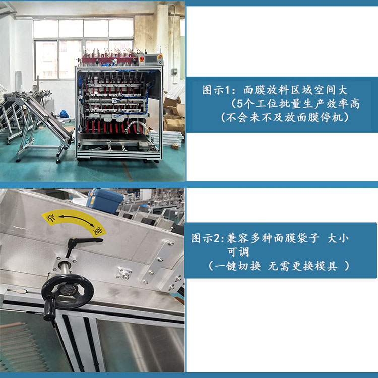 本面膜生產(chǎn)線可以很好的兼容面膜軟袋,可以把面膜袋中沒(méi)有裝面膜布和充填重量超標(biāo)的面膜產(chǎn)品剔除,最后可以把面膜按設(shè)定的片數(shù)整齊成堆送出,便于后端打包裝盒,本生產(chǎn)線只需要1個(gè)人操作,就可以保質(zhì)保量地生產(chǎn)面膜. | |
