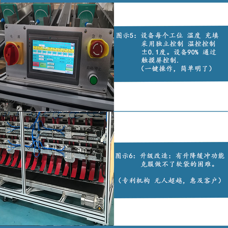 機(jī)器標(biāo)配升降定位緩沖,可以有效防止袋子掉落過程中的液體飛濺,